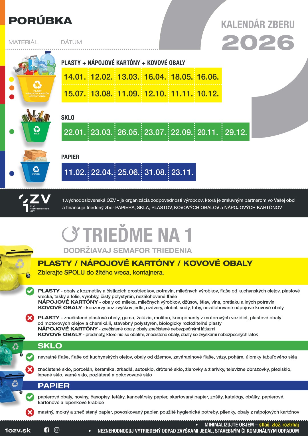 TRIEDENÝ ZBER ODPADOV OZV poster A3 VIANOCE 2025 OZV plagat TRIEDILI SME PLAST V 2024 OZV plagat AKO STE TRIEDILI V 2025 TRIEDIME SPRAVNE Nové triedenie 1OZV – Triedime správne 1.východoslovenská OZV TRIEĎ NA 1 TRIEDIŠ KOVOVÉ OBALY KALENDÁR VÝVOZOV NA ROK 2026 PREČO TRIEDIŤ ODPAD SÚŤAŽE, HRY ČO PATRÍ A NEPATRÍ DO TRIEDENÉHO ZBERU OZNÁMENIE O ÚROVNI VYTRIEDENIA A VYZBIERANÝCH MNOŽSTVÁCH VZN O NAKLADANÍ S KO A DSO